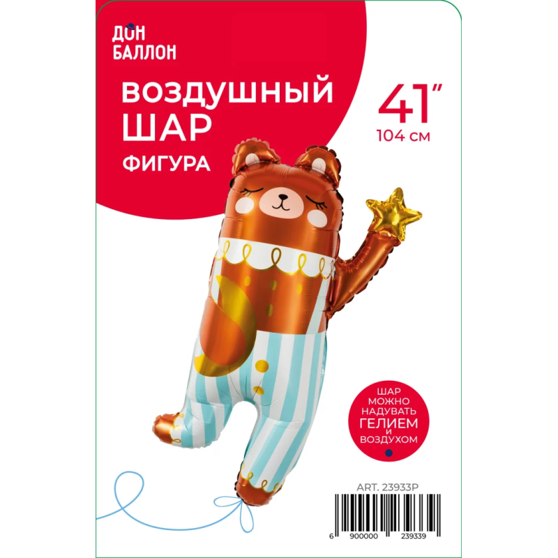 Шар (41''/104 см) Фигура, Мишка со звездочкой, 1 шт. в уп., 23933P