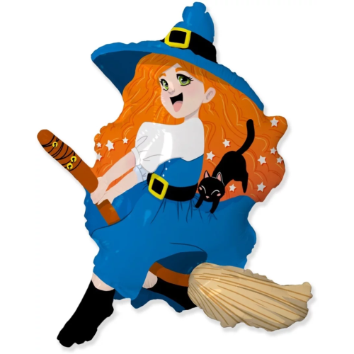 Шар (41''/104 см) Фигура, Ведьмочка на метле, 1 шт., 901850