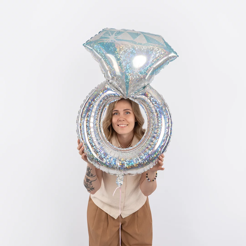Шар (42''/107 см) Фигура, Кольцо с бриллиантом, Серебро, Голография, 1 шт., 27131