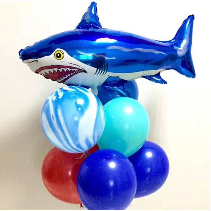 Шар (42''/107 см) Фигура, Страшная акула, Синий, 1 шт., 901643A