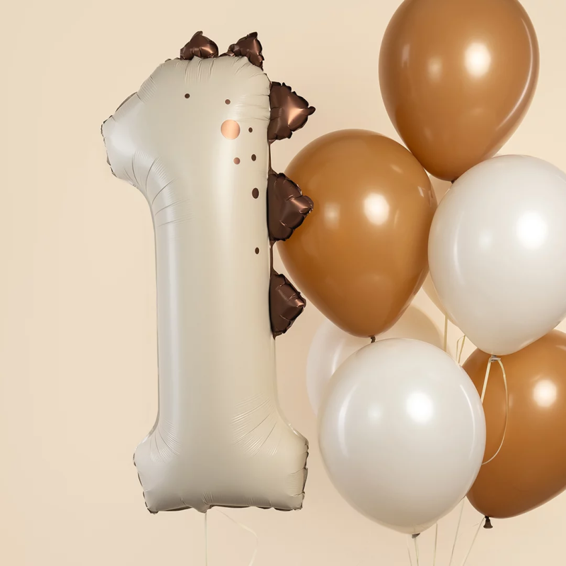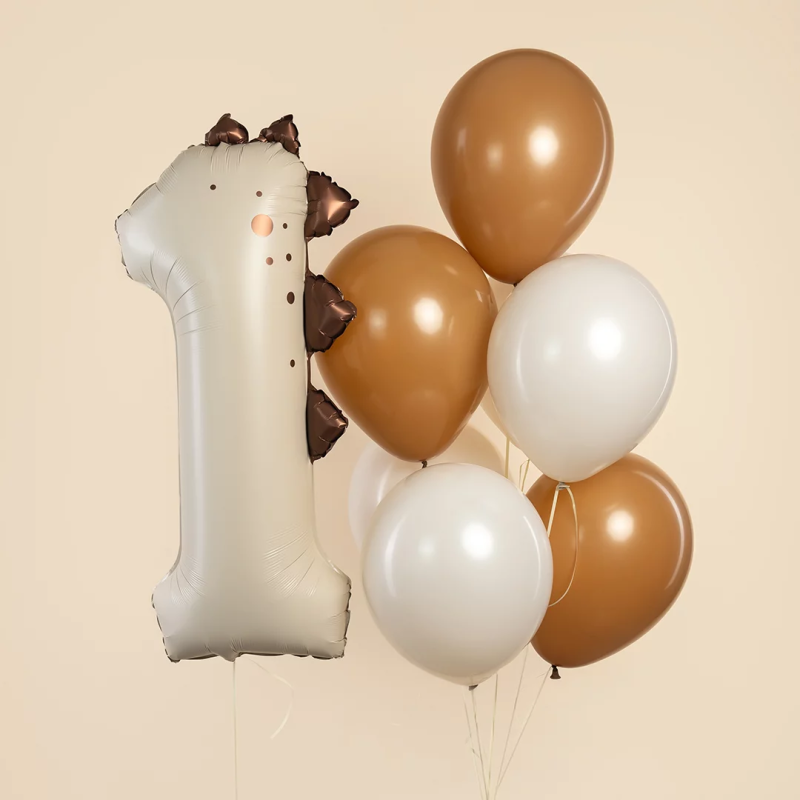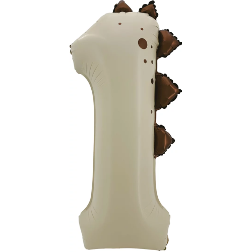 Шар (42''/107 см) Цифра, 1 Динозаврик, Бежевый, Сатин, 1 шт. в уп., 27711