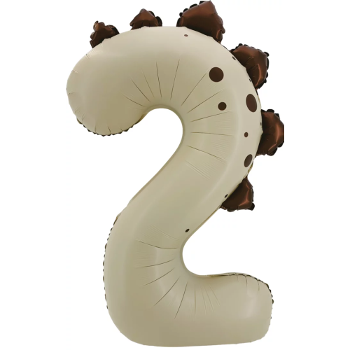 Шар (42''/107 см) Цифра, 2 Динозаврик, Бежевый, Сатин, 1 шт. в уп., 27712