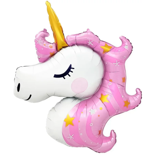 Шар (43''/109 см) Фигура, Голова, Звездный Единорог, Розовый, 1 шт., 27387