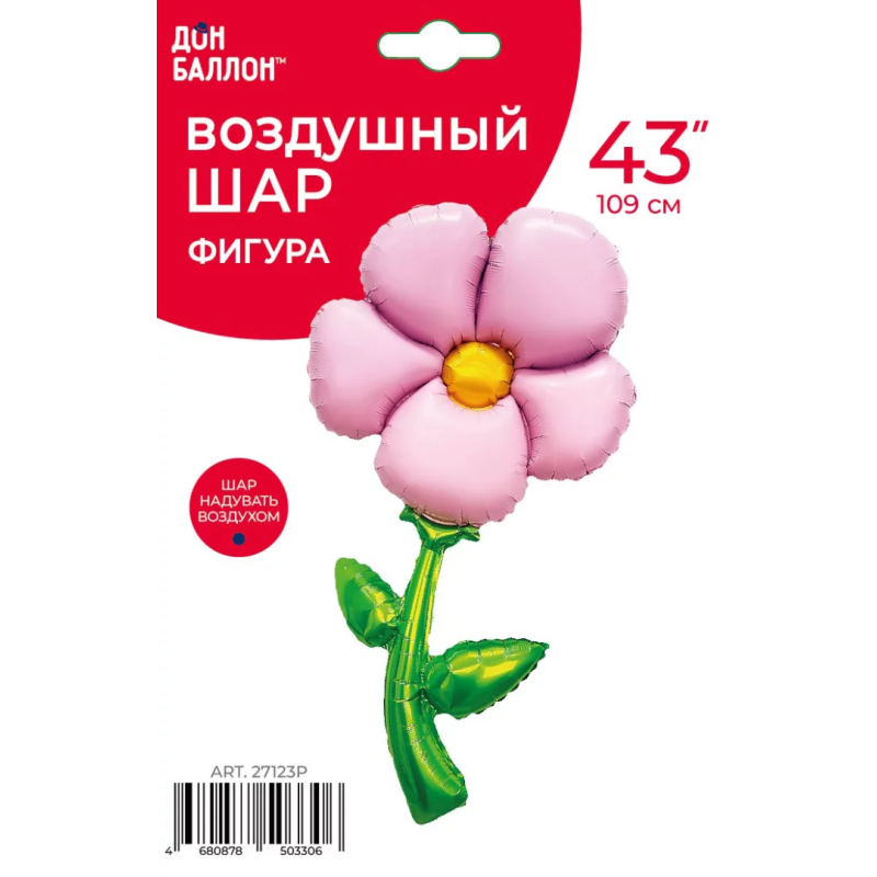 Шар (43''/109 см) Цветок, надув воздухом, Розовый, 1 шт. в уп., 27123P