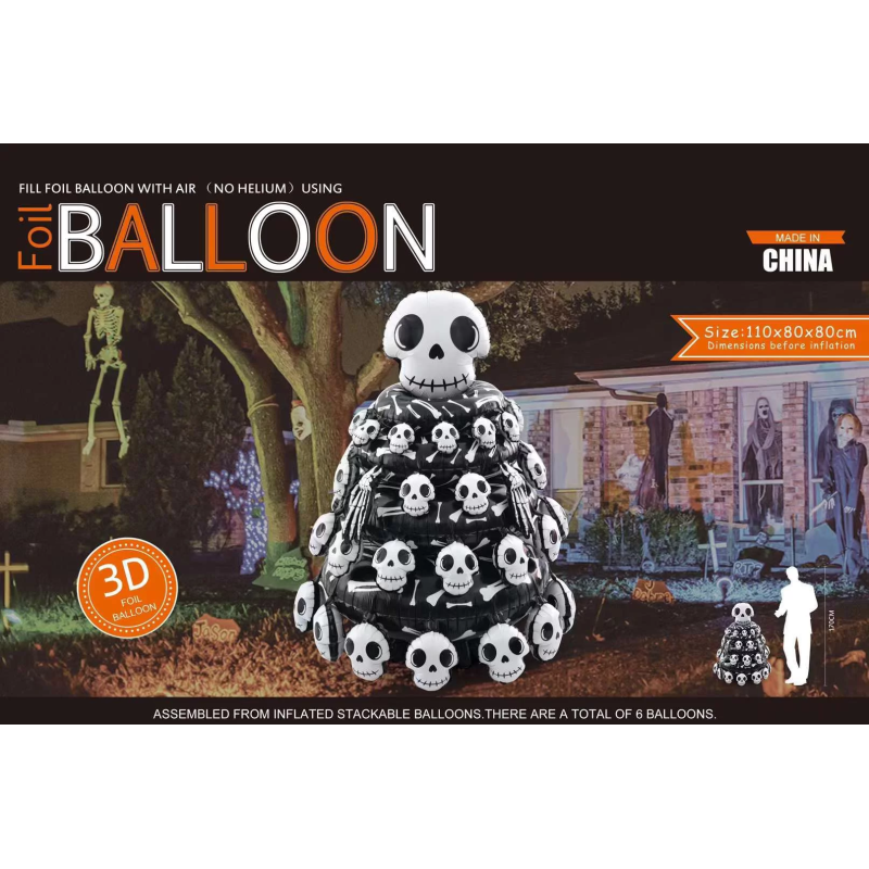 Шар (44''/112 см) Фигура 3D, Черепа на Хэллоуин, 1 шт. в уп., 24699