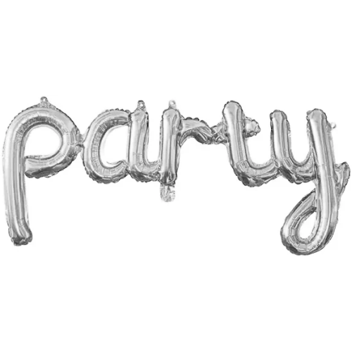 Шар (45''/114 см) Фигура, Надпись "Party", Серебро, 1 шт., 23823