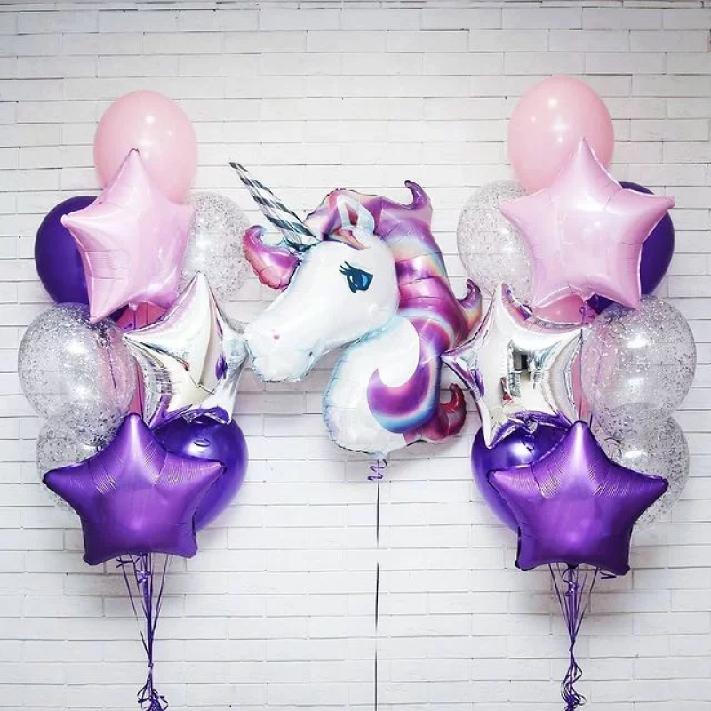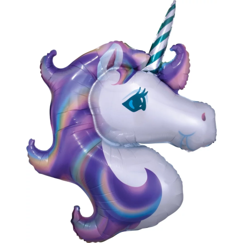 Шар (46''/117 см) Фигура, Голова, Нежный Единорог, Сиреневый, 1 шт., 15236