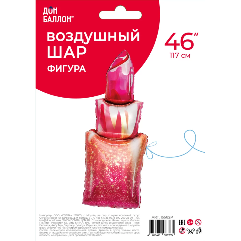 Шар (46''/117 см) Фигура, Губная помада, Розовый, 1 шт. в уп., 15582P