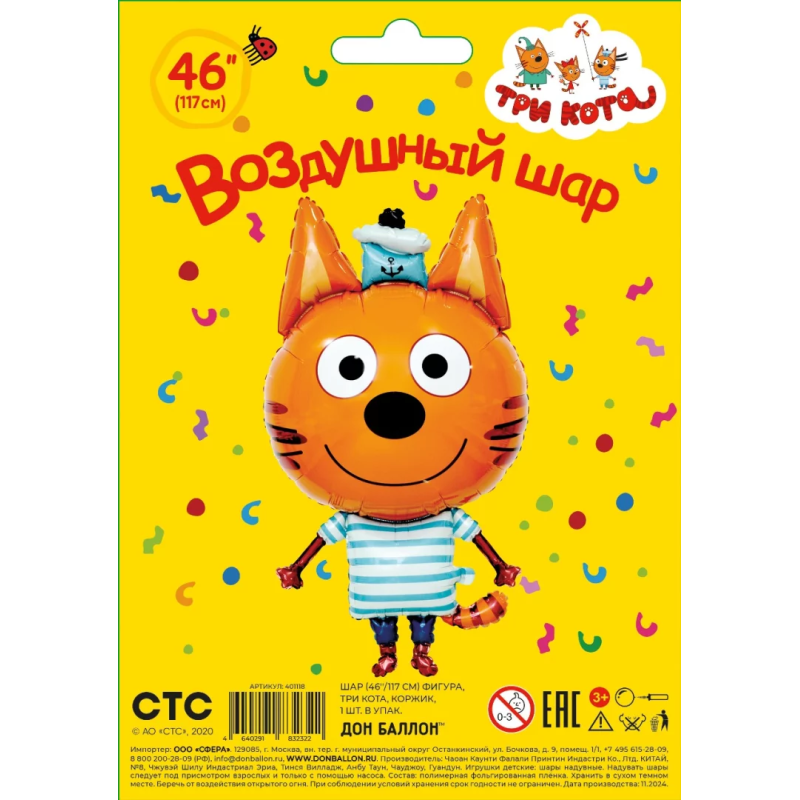 Шар (46''/117 см) Фигура, Три Кота, Коржик, 1 шт. в уп., 401118