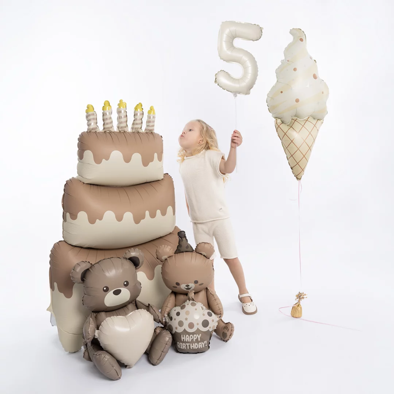 Шар (47''/119 см) Фигура 3D, Торт со свечками, Бежевый, Сатин, 1 шт. в уп., 25066
