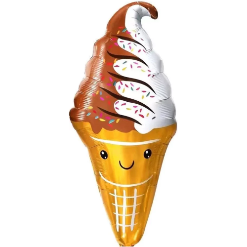Шар (47''/119 см) Фигура, Мороженое, Вафельный рожок, Шоколадный/Белый, 1 шт., 19823