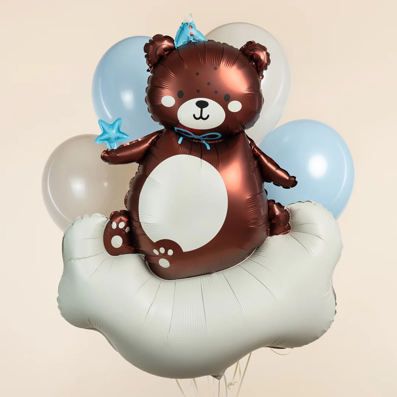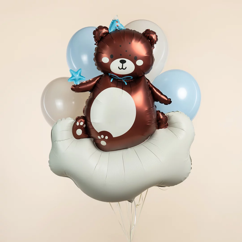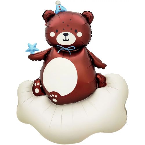 Шар (48''/122 см) Фигура, Мишка на облачке (голубой колпачок), Сатин, 1 шт., 27771