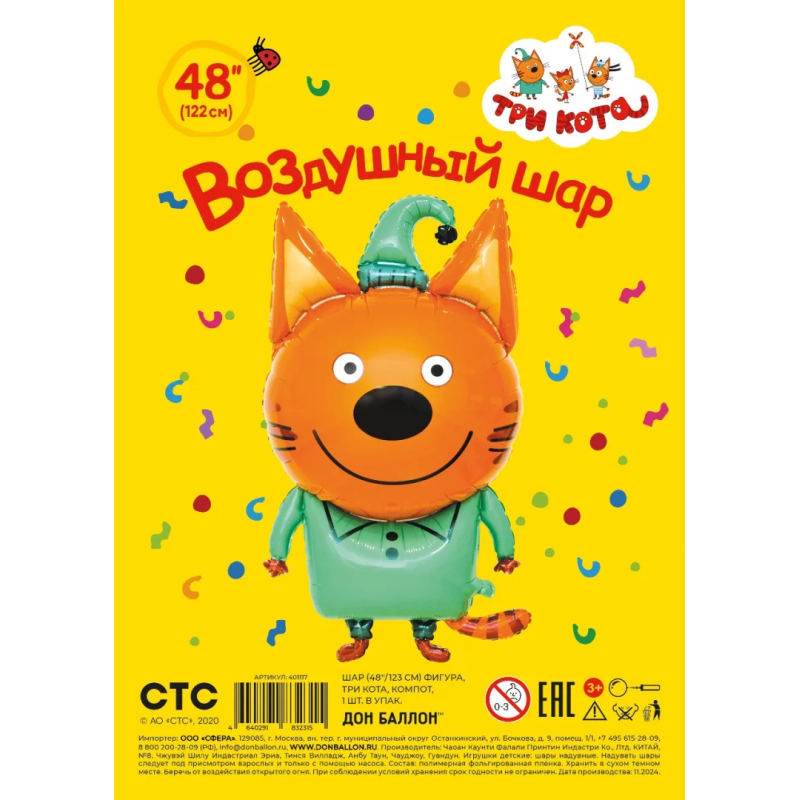 Шар (48''/122 см) Фигура, Три Кота, Компот, 1 шт. в уп., 401117