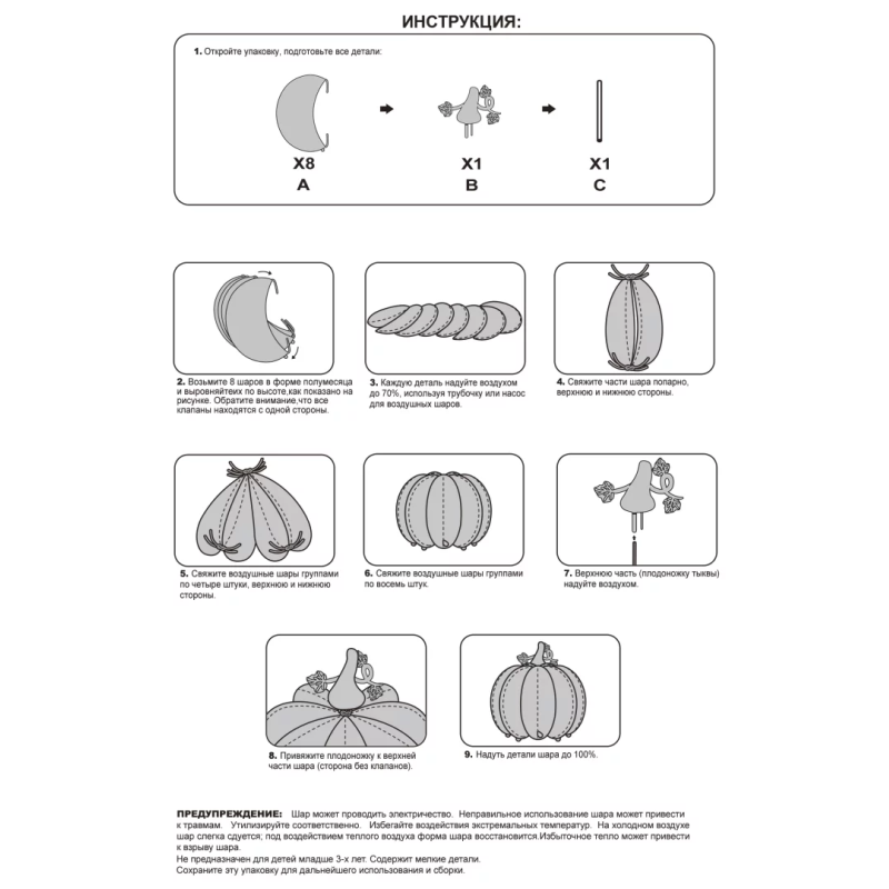 Воздушный шар из полимерной пленки, надувается только воздухом, идеально подходит для детских игр и забав.