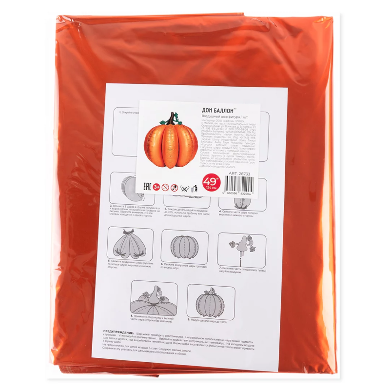 Шар (49''/124 см) Фигура 3D, Тыква, 1 шт. в уп., 26733