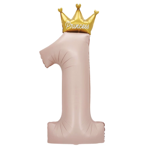 Шар (49''/124 см) Цифра, 1 Золотая корона, Розовый, 1 шт. в уп., 23374