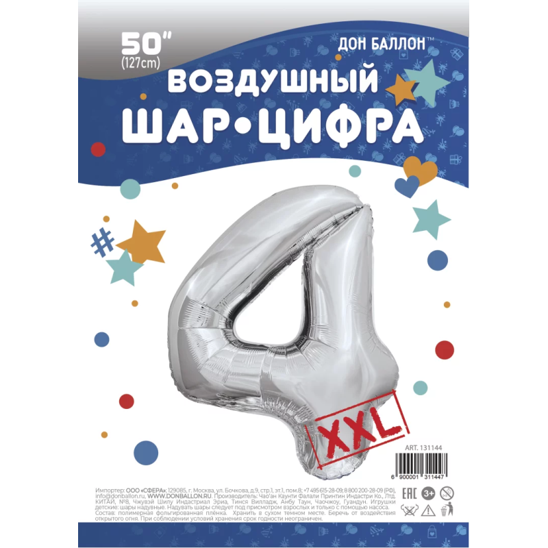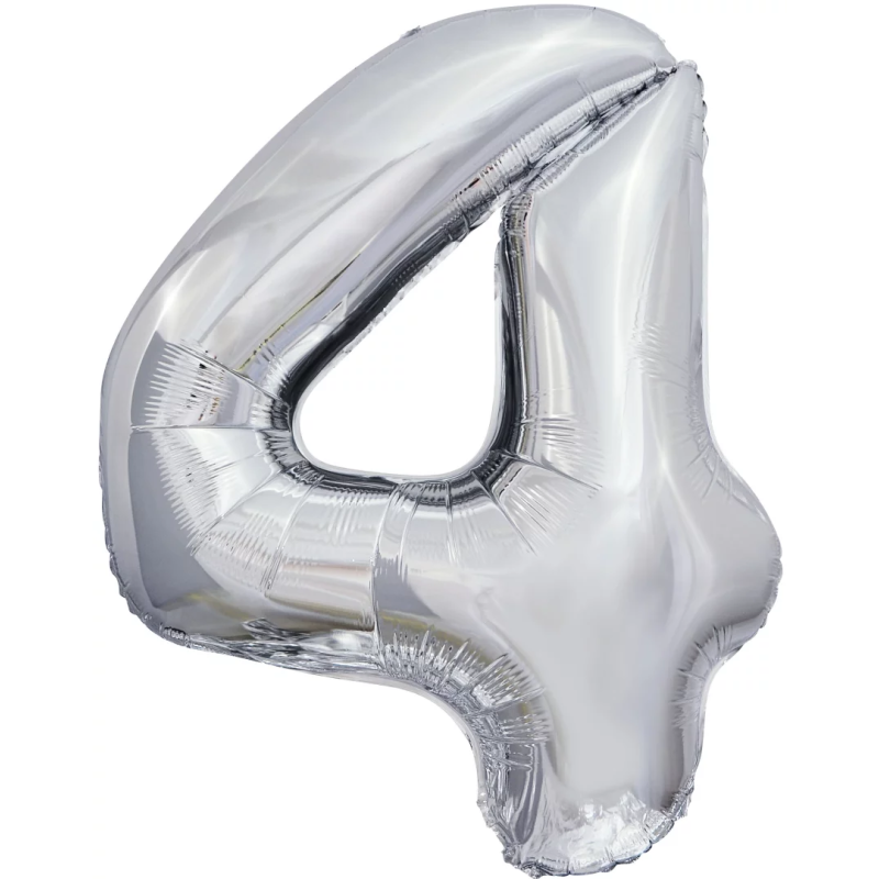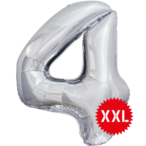 Шар (50''/127 см) Цифра, 4 XXL, Серебро, 1 шт. в уп., 131144