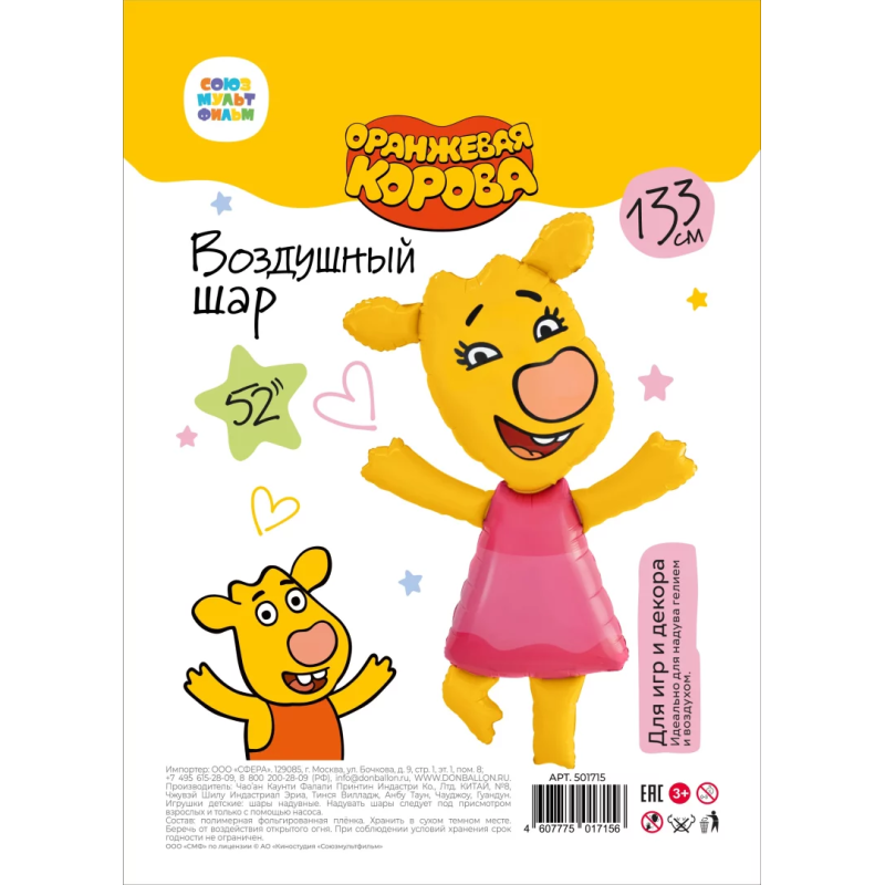 Шар (52''/132 см) Фигура, Оранжевая корова, Зоя, 1 шт. в уп., 501715