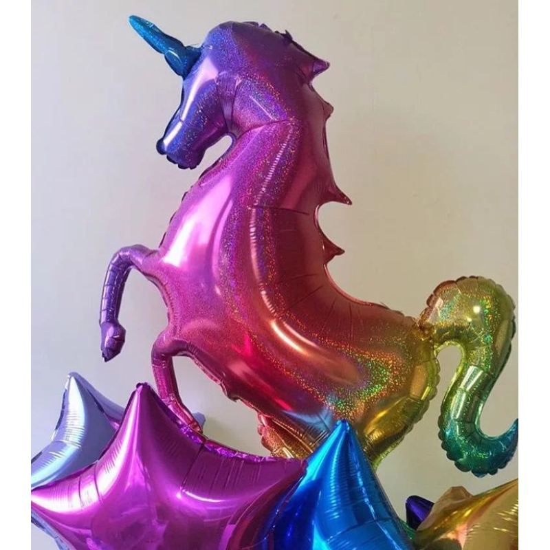 Шар (53''/135 см) Фигура, Сверкающий единорог, Радужный, Голография, 1 шт., 13270