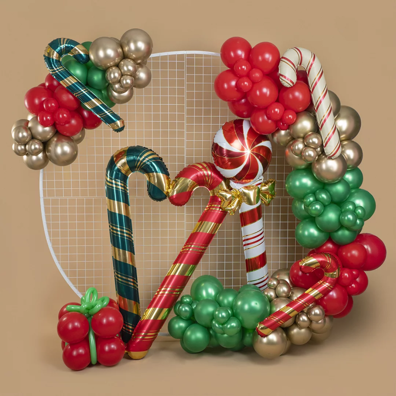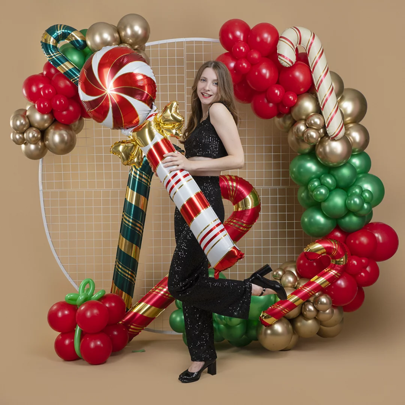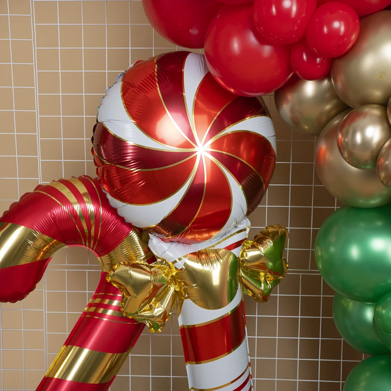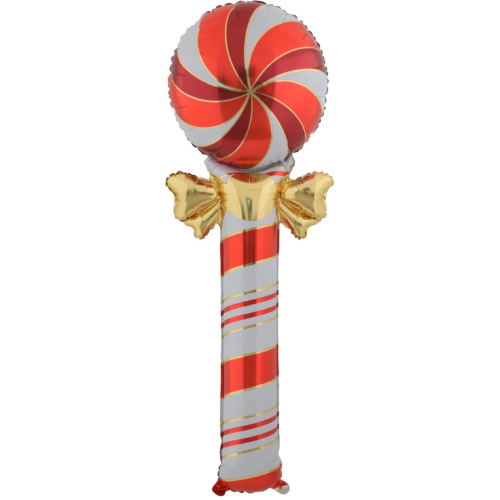 Шар (59''/150 см) Фигура, Леденец трость с бантом, Красный/Золото, 1 шт., 25035