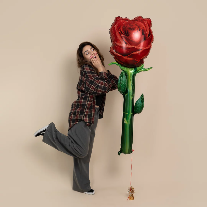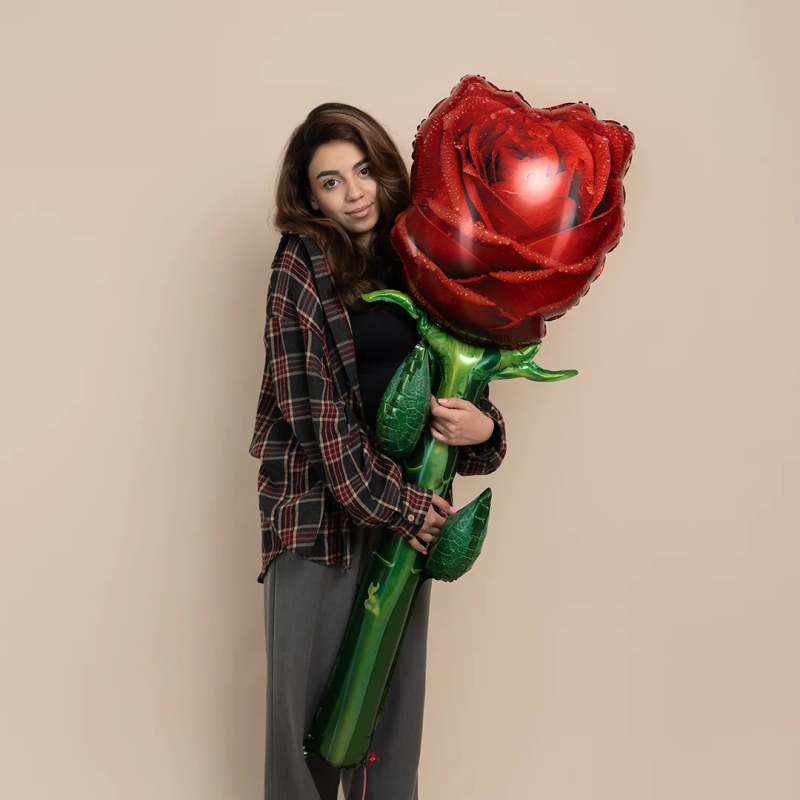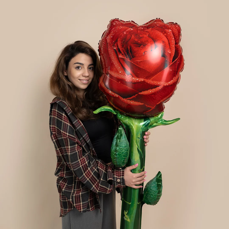 Шар (59''/150 см) Цветок, Роза, Красный, 1 шт. в уп., 26414