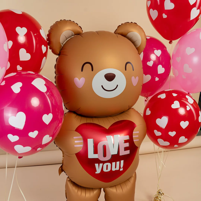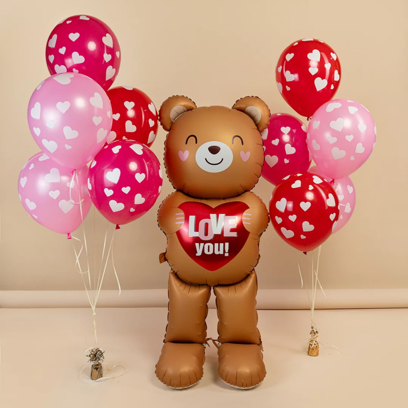 Шар (61''/155 см) Фигура 3D, Мишка с сердцем, 1 шт. в уп., 27411