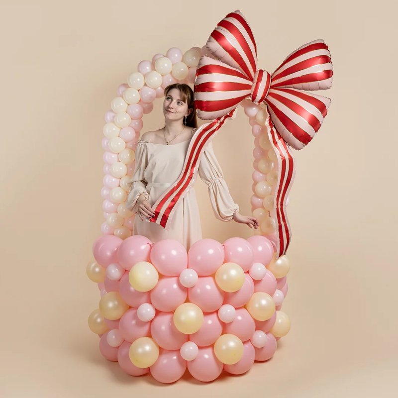 Шар (61''/155 см) Фигура, Бант, Стильные полоски, Красный, 1 шт., 27775
