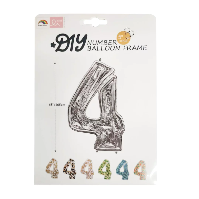Шар (65''/165 см) Цифра, 4 Каркасная, 1 шт. в уп., 131374