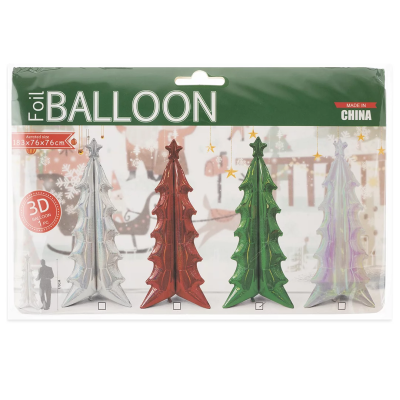 Шар (72''/183 см) Фигура 3D, Новогодняя елка, Зеленый, Голография, 1 шт. в уп., 25048
