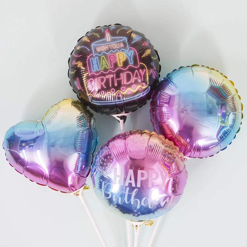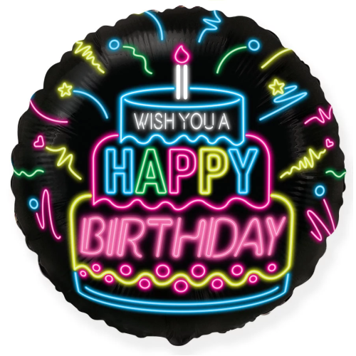 Шар (9''/23 см) Мини-круг, С Днем Рождения! (неоновые огни), Черный, 1 шт., 402598