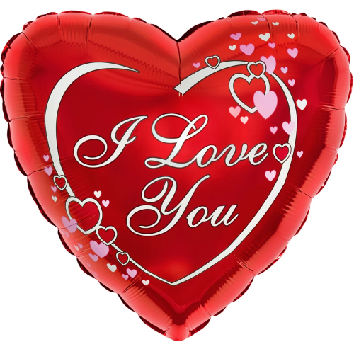 Шар (9''/23 см) Мини-сердце, Я Люблю Тебя (парящие сердца), Красный, 1 шт., 202570