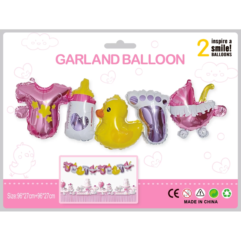 Шар Гирлянда (38''/97 см) Фигура, Рождение Девочки, Розовый, 2 шт. в уп., 19866