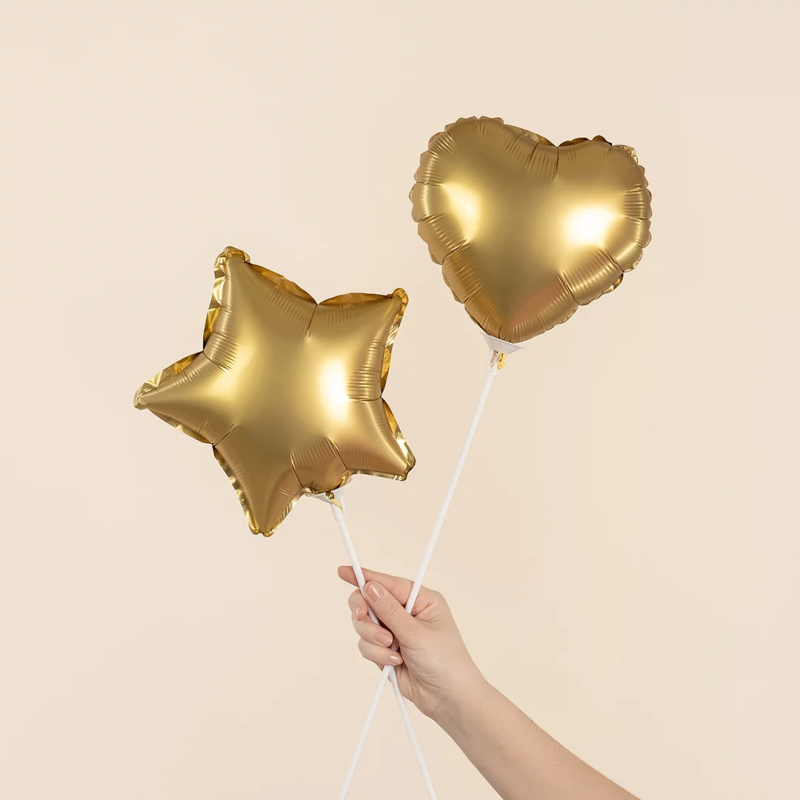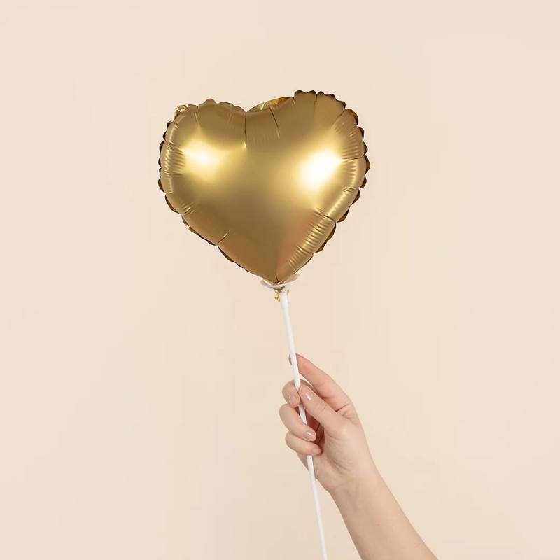 Шар с клапаном (10''/25 см) Мини-сердце, Золото, Сатин, 1 шт., 27613