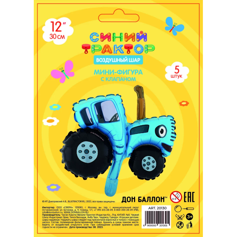 Шар с клапаном (12''/30 см) Мини-фигура, Синий трактор, 5 шт. в уп., 20130