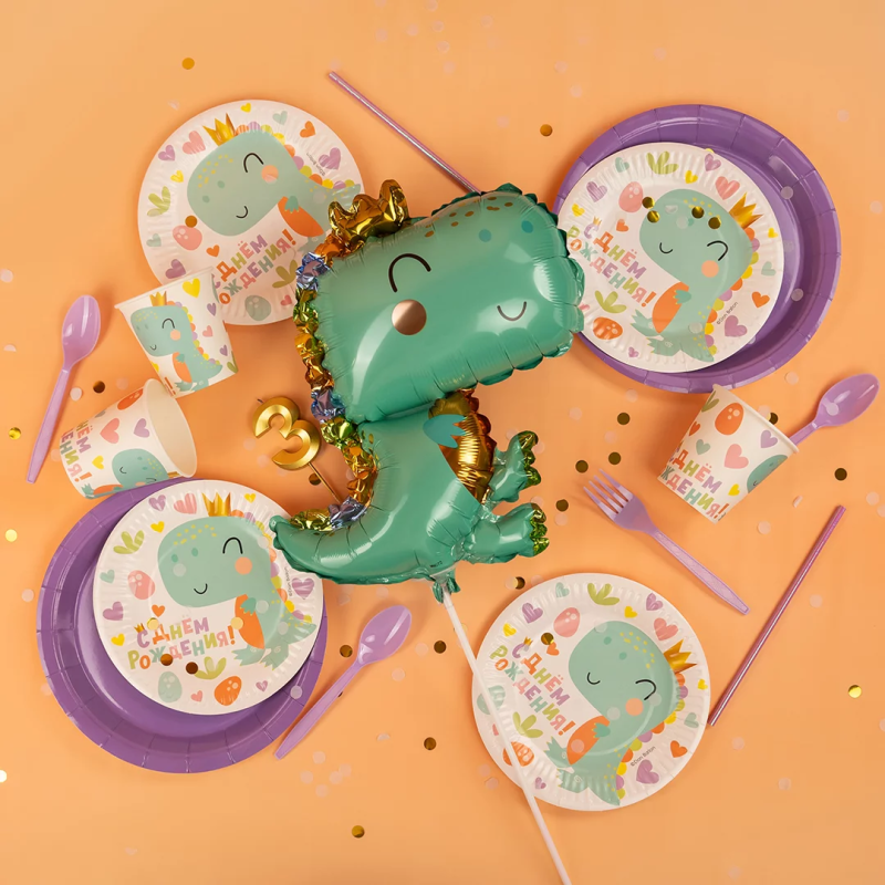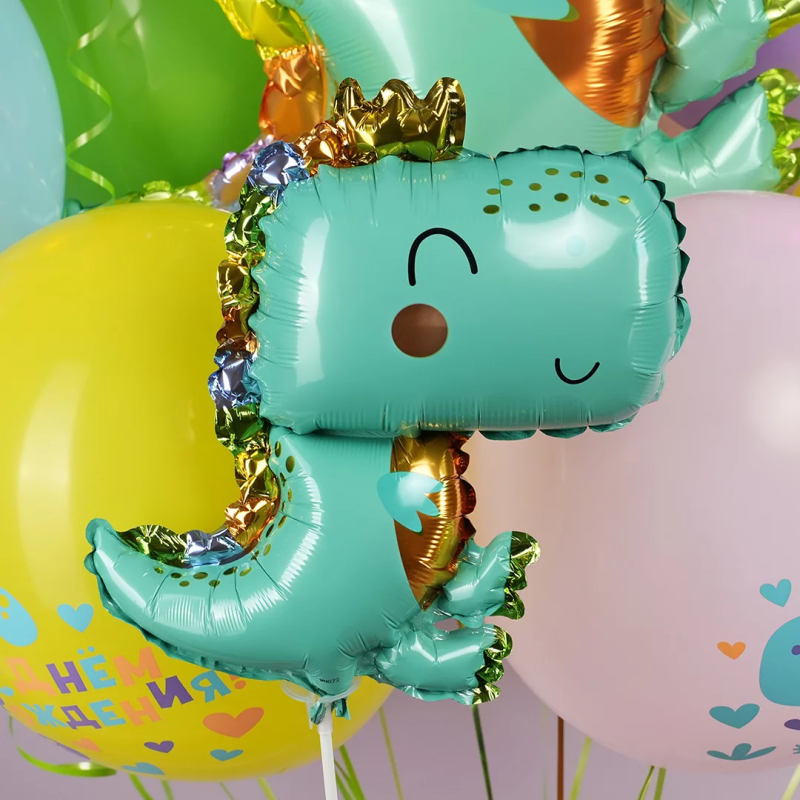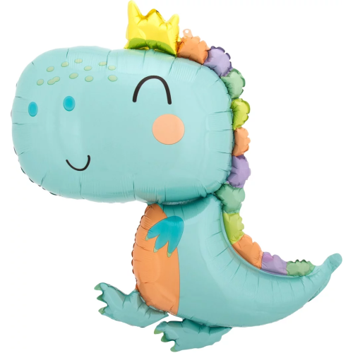 Шар с клапаном (14''/36 см) Мини-фигура, Динозаврик в короне, 1 шт., 23620