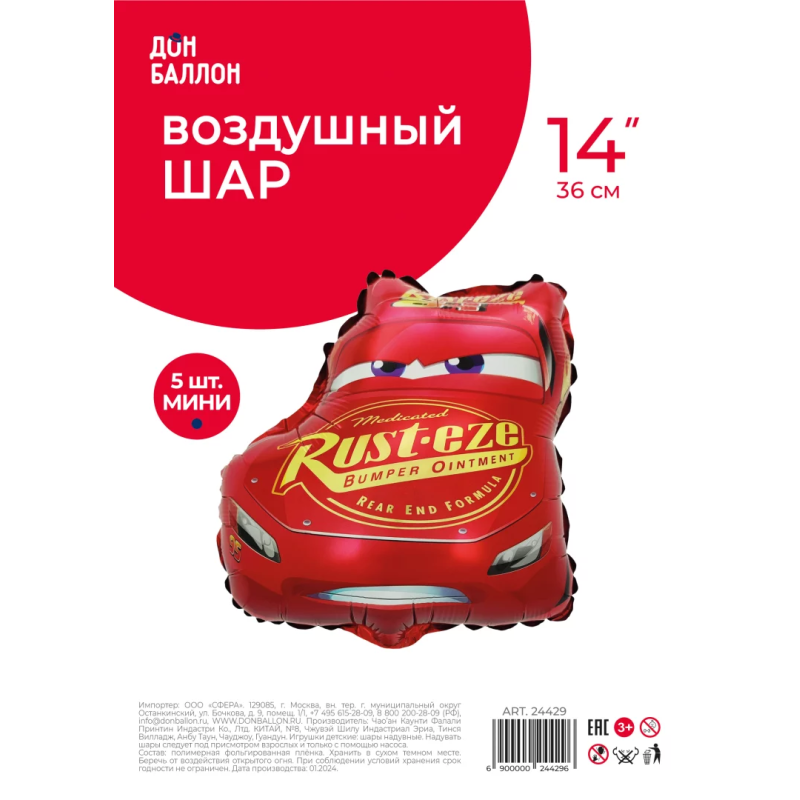 Шар с клапаном (14''/36 см) Мини-фигура, Гоночная машинка, 5 шт. в уп., 24429