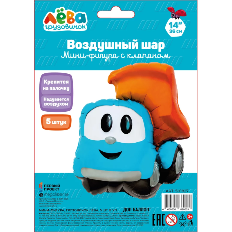 Шар с клапаном (14''/36 см) Мини-фигура, Грузовичок Лёва, 5 шт. в уп., 501827
