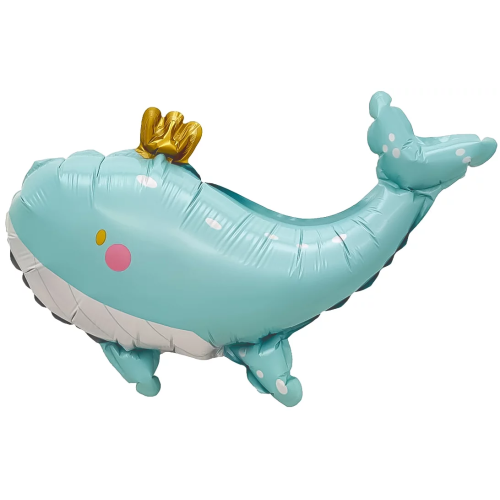Шар с клапаном (14''/36 см) Мини-фигура, Кит в короне, 5 шт. в уп. (цв.этик.), 26419S5