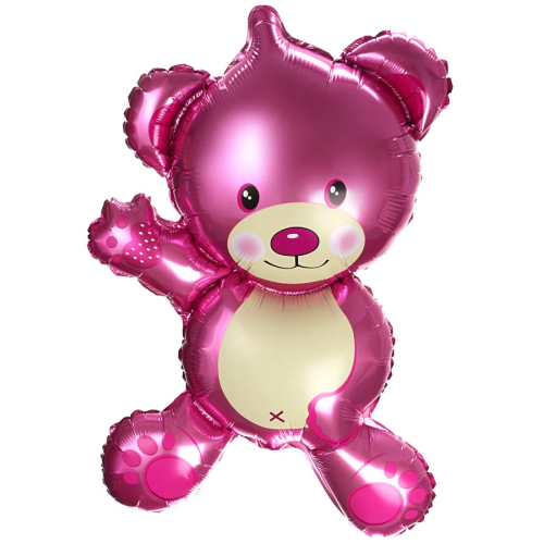 Шар с клапаном (14''/36 см) Мини-фигура, Плюшевый мишка, Розовый, 1 шт., 17106