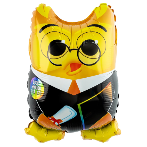 Шар с клапаном (14''/36 см) Мини-фигура, Сова Выпускник, 5 шт. в уп. (цв.этик.), 24585S5