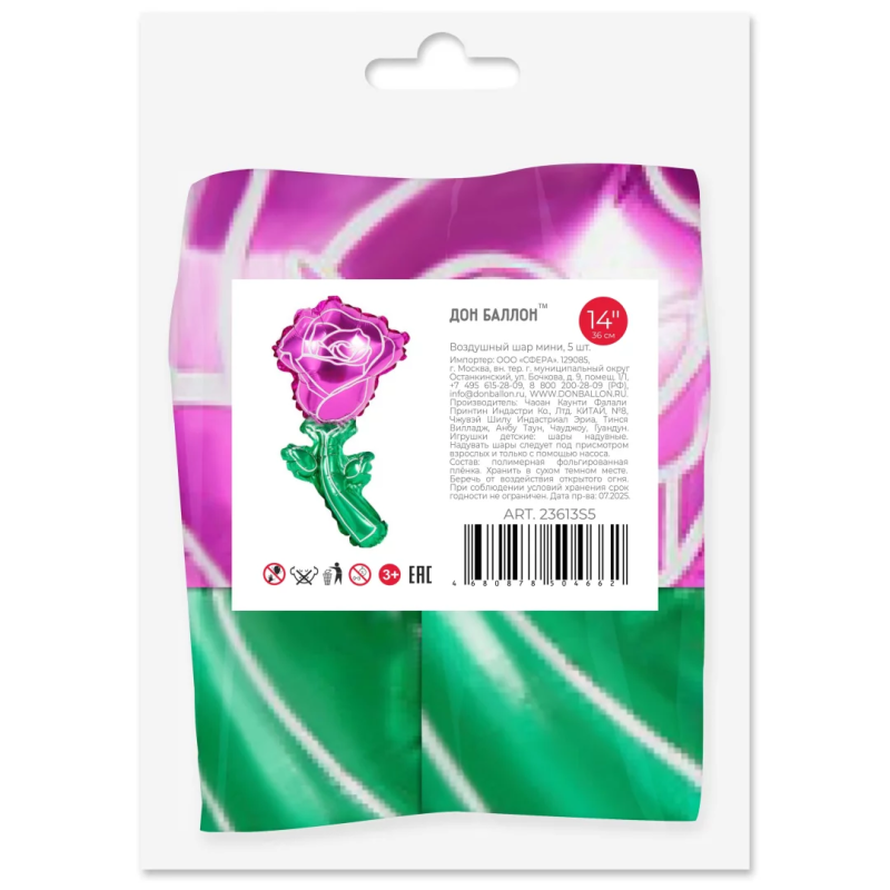 Шар с клапаном (14''/36 см) Мини-цветок, Роза, Ярко-розовый, 5 шт. в уп. (цв.этик.), 23613S5
