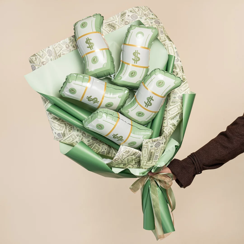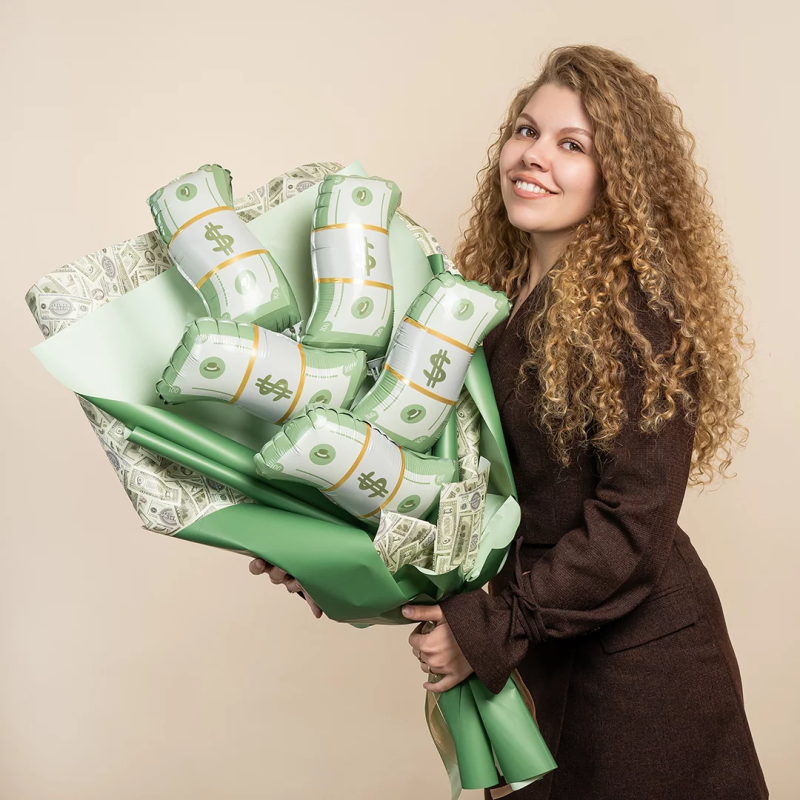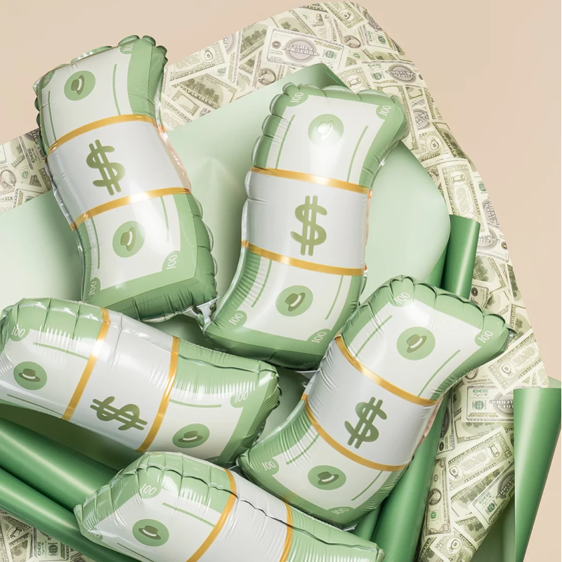 Шар с клапаном (15''/38 см) Мини-фигура, Деньги, 5 шт. в уп., 27344