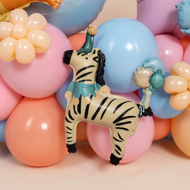 Шар с клапаном (15''/38 см) Мини-фигура, Цирк, Зебра в колпачке, 1 шт., 26772