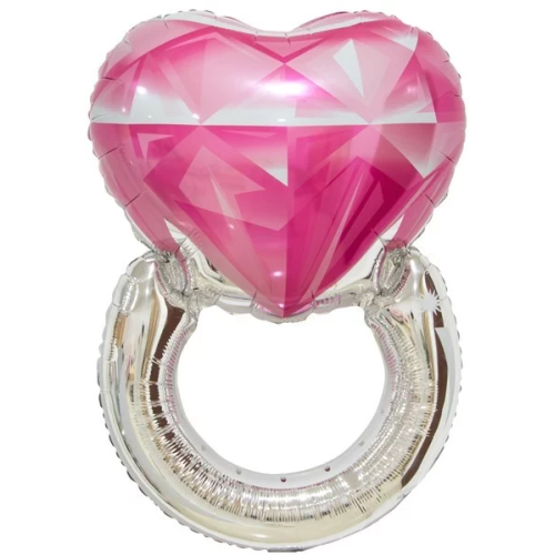 Шар с клапаном (15''/38 см) Мини-сердце, Кольцо с бриллиантом, Розовый, 1 шт., 24013