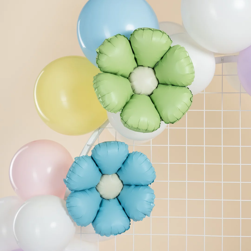 Шар с клапаном (15''/38 см) Мини-цветок, Ромашка, Голубой, Сатин, 5 шт. в уп., 27504