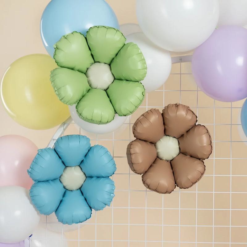 Шар с клапаном (15''/38 см) Мини-цветок, Ромашка, Мятный, Сатин, 5 шт. в уп., 27505