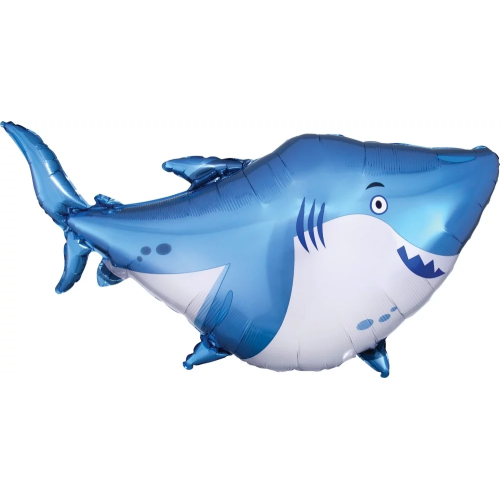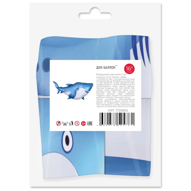 Шар с клапаном (16''/41 см) Мини-фигура, Акула, Голубой, 5 шт. в уп. (цв.этик.), 17258S5