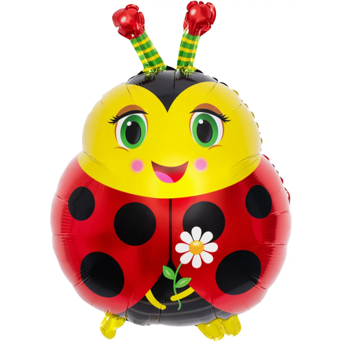 Шар с клапаном (16''/41 см) Мини-фигура, Божья коровка с цветком, 5 шт. в уп., 17031P5