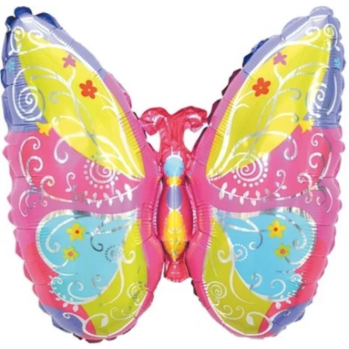 Шар с клапаном (16''/41 см) Мини-фигура, Экзотическая бабочка, Розовый, 1 шт., 17022