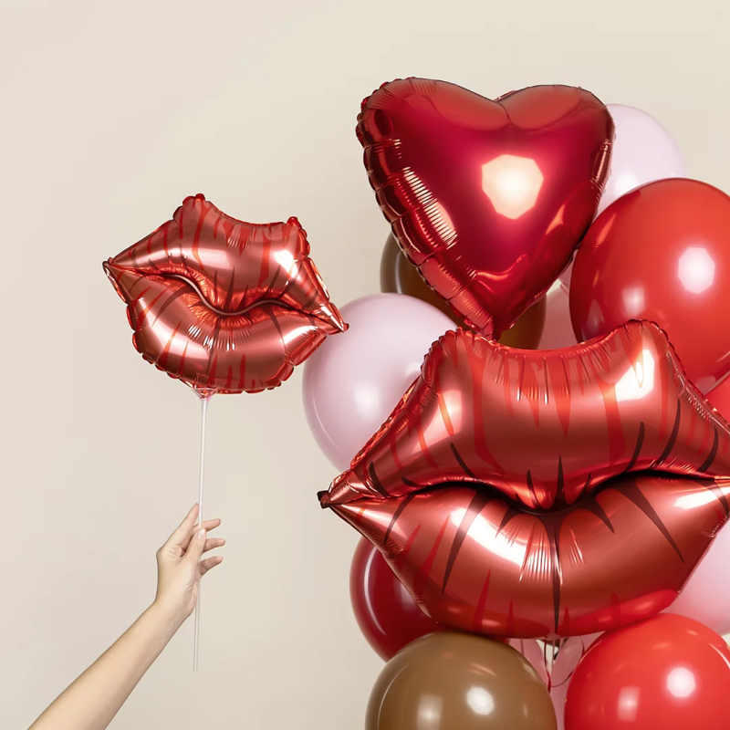 Шар с клапаном (16''/41 см) Мини-фигура, Губы, Поцелуй, 1 шт., 27034